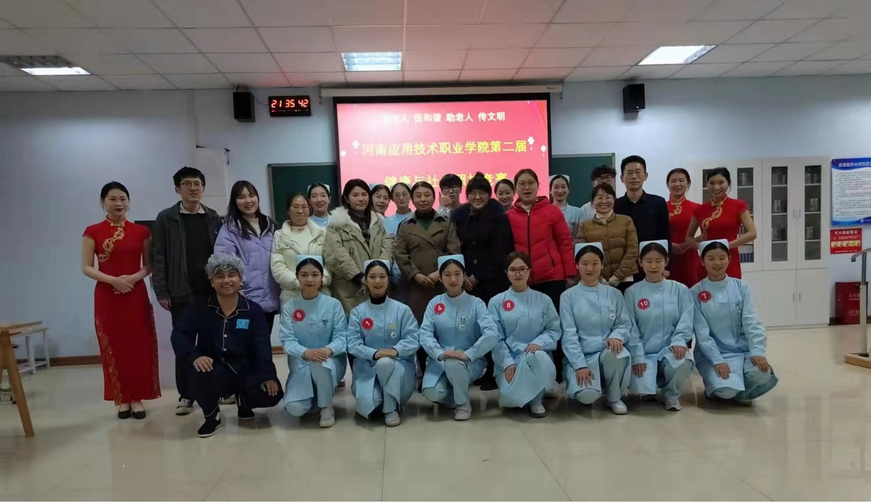 为弘扬尊老、敬老、孝老、爱老的优秀传统美德,按照学校《关于开展2021年技能大赛月活动的通知》精神,护理学院于2021年11月23日在2号实训楼301室成功举办了第二届健康与社会照护竞赛暨省赛选拔赛。护理学院院长王风云及部分教师代表和学生代表观摩了此次比赛,柳超等5名教师担任大赛评委。