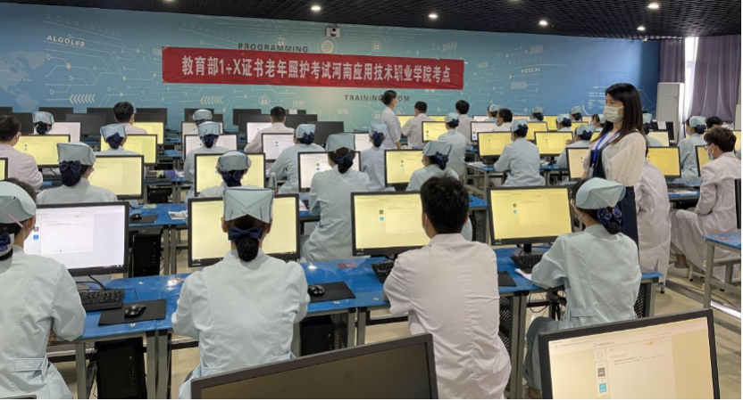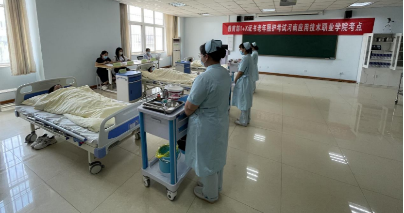 在我省大力推进“人人持证、技能河南”的政策的引领下,我院积极开展“燃青春,暖夕阳,人人持证,护老助老”主题活动,推进1+X老年照护职业技能等级考试,不仅是拓宽高职院校学生就业的重要渠道,也缓解了老年照护服务存在潜在需求与现实需求不足的问题,改善和提高了从业人员受教育水平低的现象。这些经过院校正规培养、严格考核而获得教育部“1+X”老年照护职业技能等级证书的技能人才充实到养老行业,必将缓解养老事业对高技能人才的需求压力,对河南乃至全国的养老事业健康发展起到巨大的推动作用。