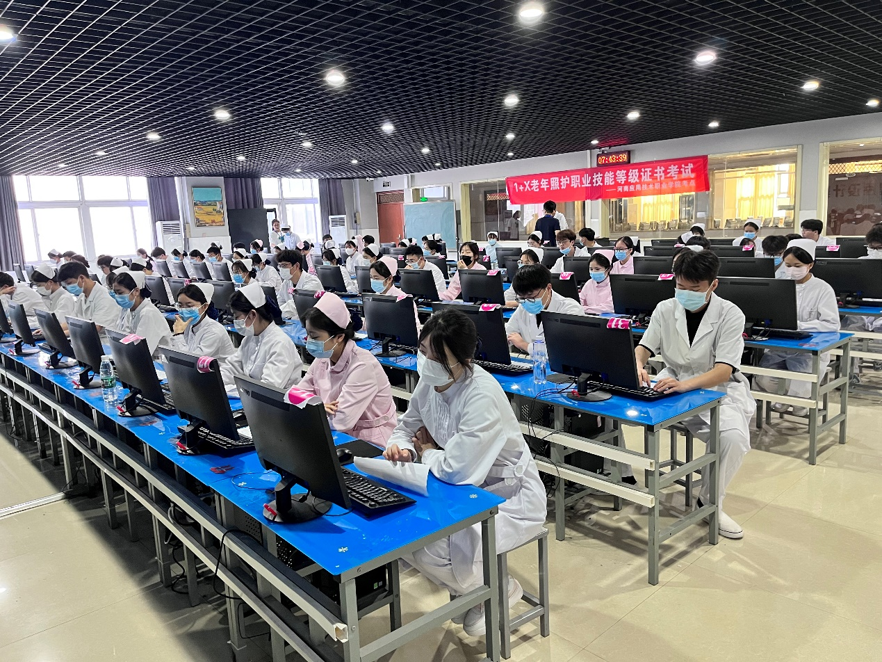 本次“1+X”老年照护职业技能等级证书的培训和考评工作受到学校、学院领导的高度重视。在护理学院领导周密部署,精心组织安排下,强化考场管理、保障考试安全,考评过程组织规范,考场纪律井然有序。