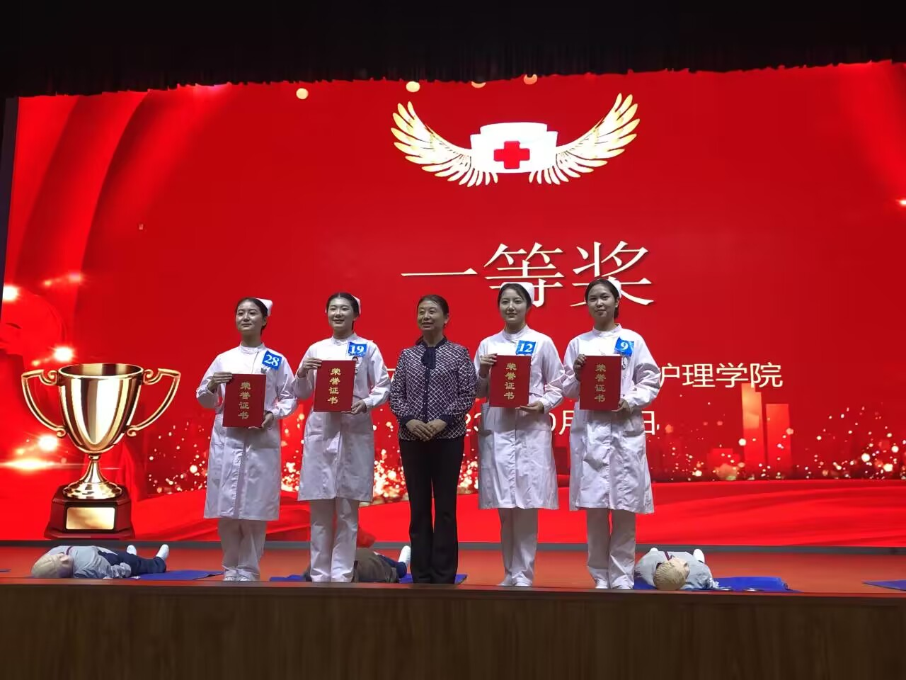 比赛结束后,王风云院长对本次比赛进行了点评,希望通过本次大赛能够提升学生的急救意识和急救能力,并对获奖选手表示祝贺。最后,由王风云院长为一等奖获得者颁发荣誉证书;杨丽萍主任为二等奖获得者颁发荣誉证书;冯顺丽老师为三等奖获得者颁发荣誉证书。