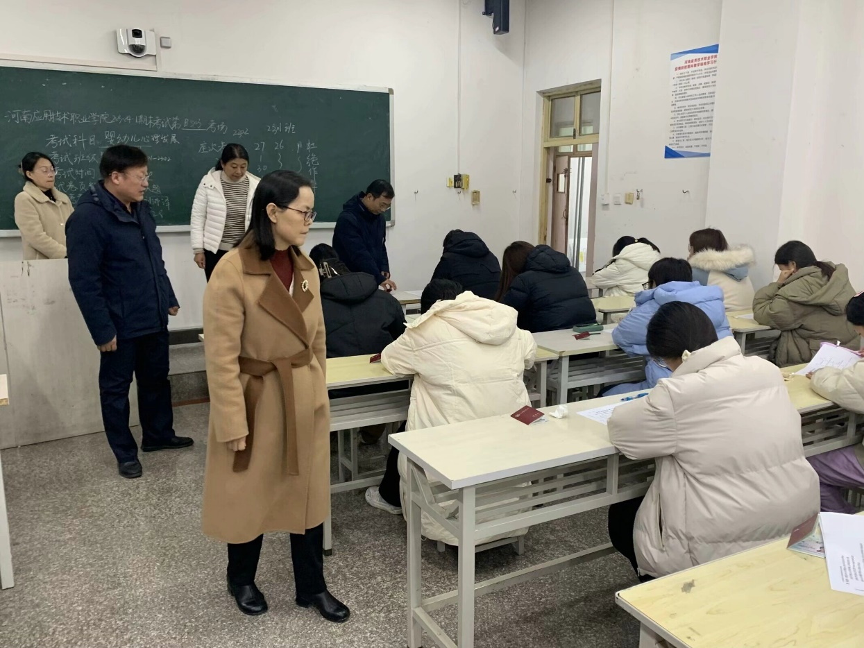 为加强考试组织管理与考风建设,1月9日下午,校党委书记闫俊山、副校长陈君丽、纪委书记陈雅莉,教务处处长赵扬、教务处副处长付永、护理学院院长王风云、护理学院党总支副书记景淼等相关负责人对我院10个考场,27个班级800余人的考试进行巡视。