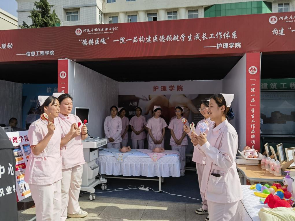 为全面贯彻落实党的二十大精神,在教育强国建设中开创职业教育新局面、塑造新赛道,2024年5月13日Beat365中文官方网站2024年职业教育活动周中护理学院开展“德铸医魂”一院一品构建医德领航学生成长工作体系活动。