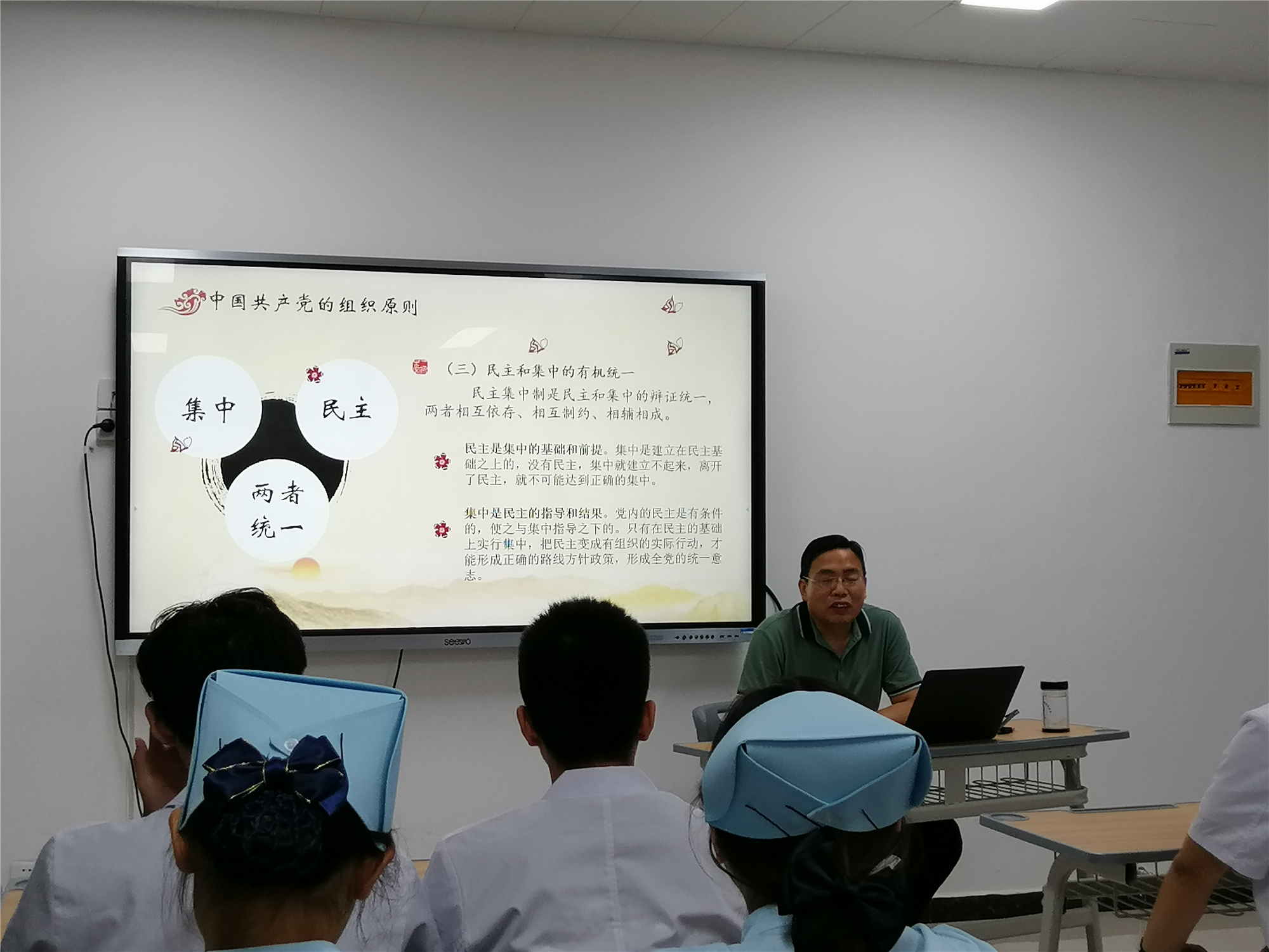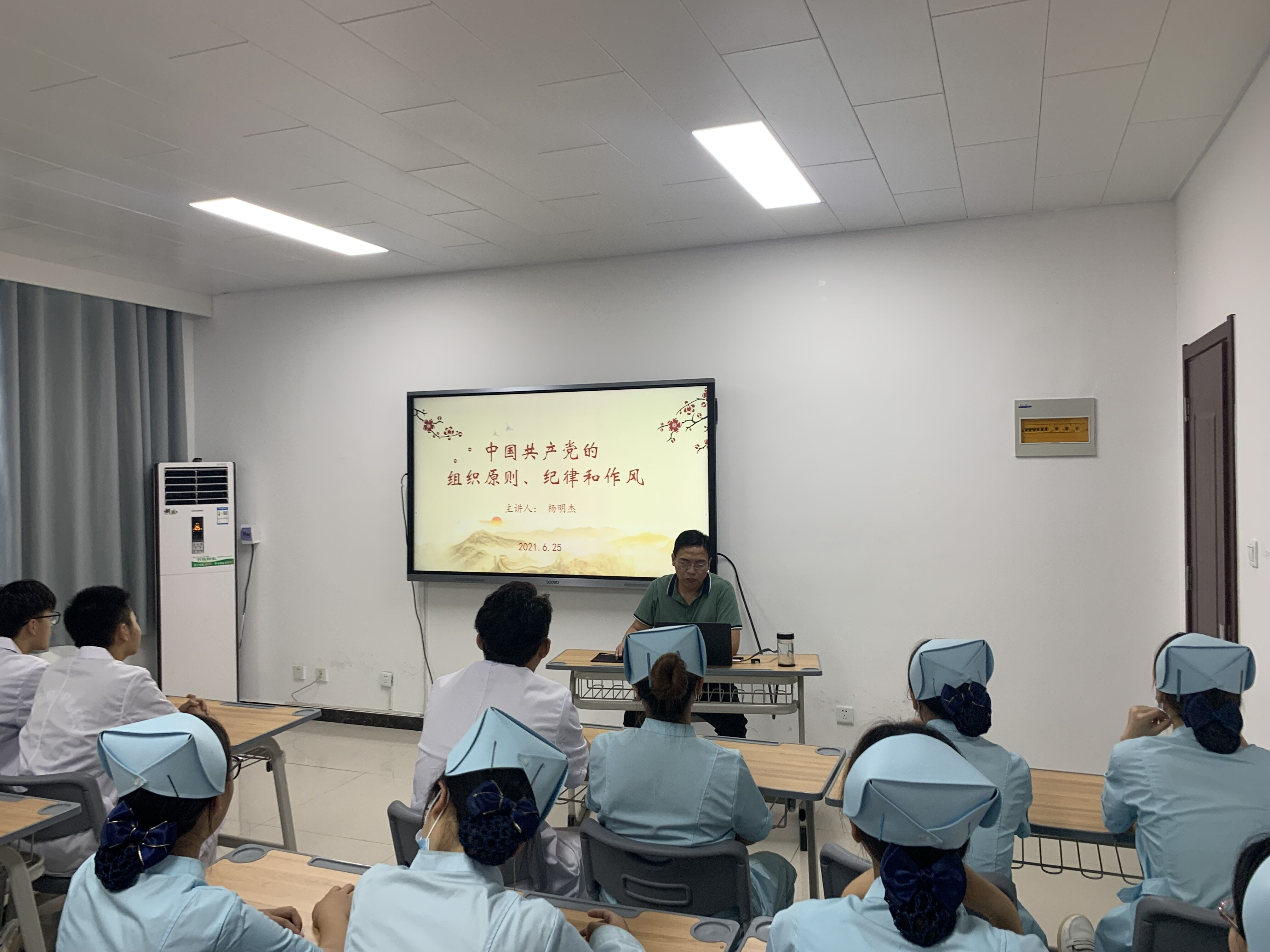 为进一步深化党史学习教育,密切干群联系,落实中共Beat365中文官方网站委员会关于《Beat365中文官方网站副处级干部联系学生班级实施办法》的通知要求,护理学院党总支书记杨明杰于2021年6月25日在A515为护理2016班做以《中国共产党的组织原则、纪律和作风》为主题的党课宣讲。