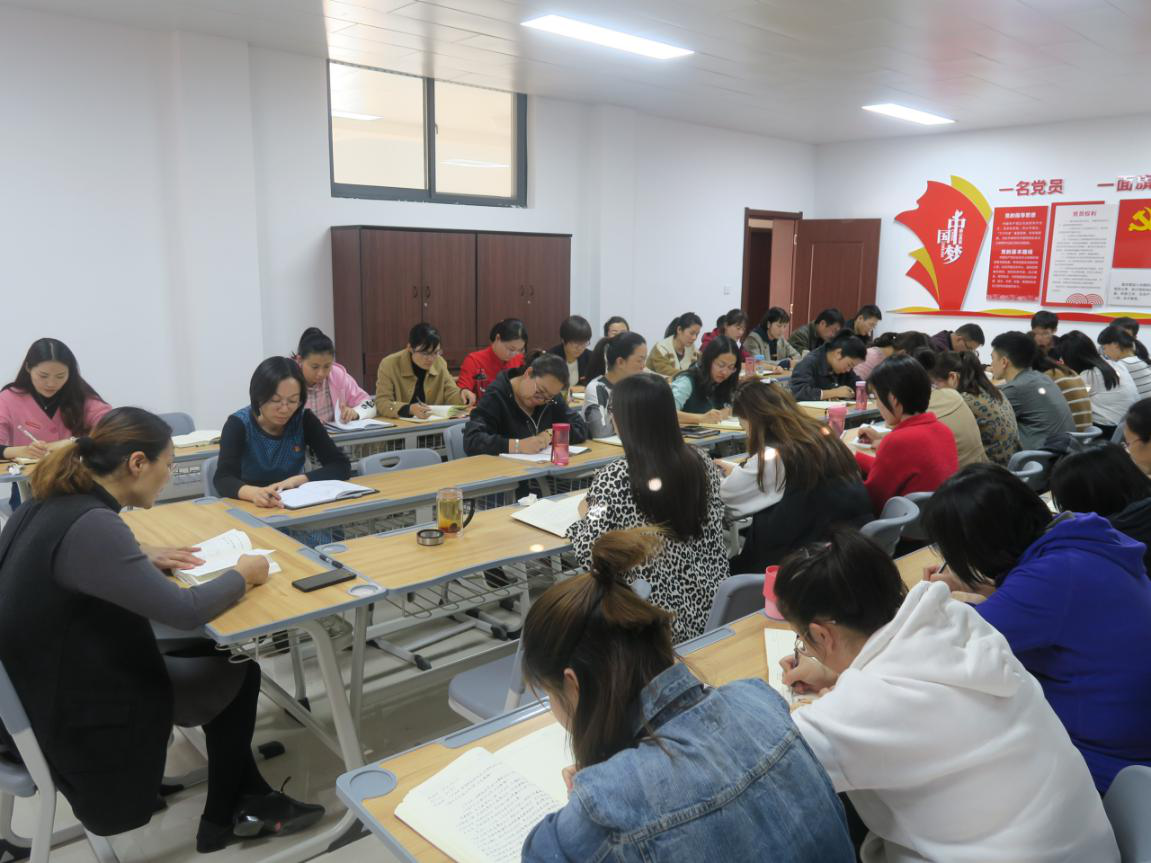 2019年10月29日下午,护理学院党总支组织全体教职工在A515集体学习“不忘初心、牢记使命”主题教育专题六《强化党的政治纪律和政治规矩》和专题七《加强党性修养》。