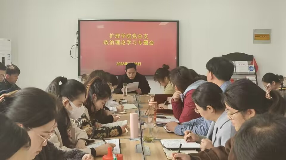 根据学校党委宣传部安排,2023年2月28日,护理学院党总支组织全体教职工在A515党员活动室召开政治理论学习专题会,会议由护理学院党总支书记杨明杰主持。