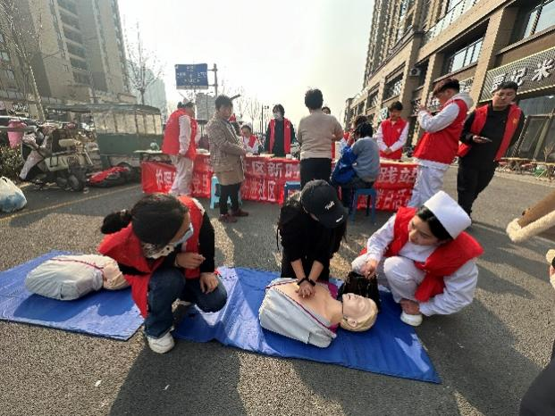 2024年3月14日,护理学院党员教师和学生志愿者走进郑州市高新区紫檀社区,开展义诊服务,将专业的医疗知识和服务送到社区居民身边,解决居民日常生活中遇到的健康问题。