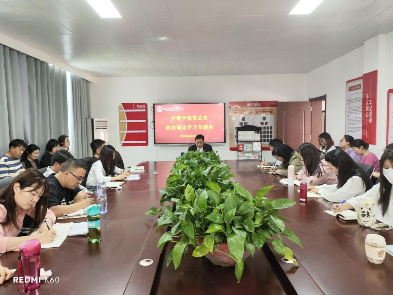 根据学校安排,2025年3月25日下午,护理学院党总支组织全体教职工在A515召开政治理论学习会议,本次会议由护理学院党总支书记杨明杰主持,旨在提升教职工的政治理论素养,推动学院在教育教学中更好地贯彻落实党的方针政策。