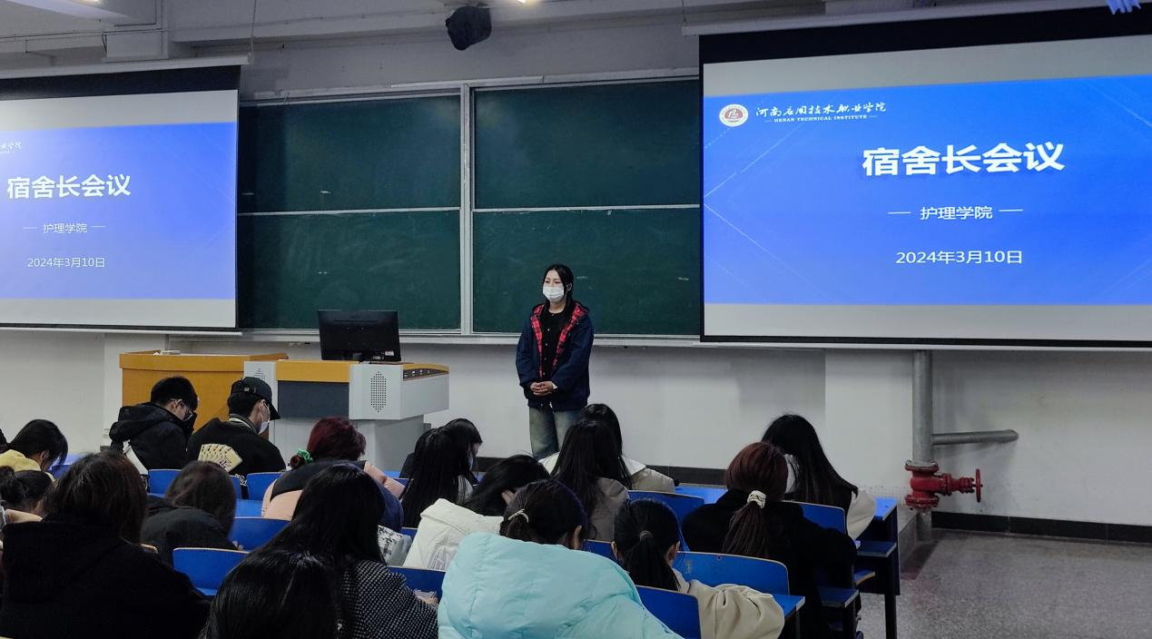为了让同学们更深入的学习了解宿舍消防安全措施、紧急逃生方法和安全用电,护理学院于2024年3月10日在B101召开宿舍长工作会议。会议由辅导员梁海洋主持,学院全体宿舍长参与。