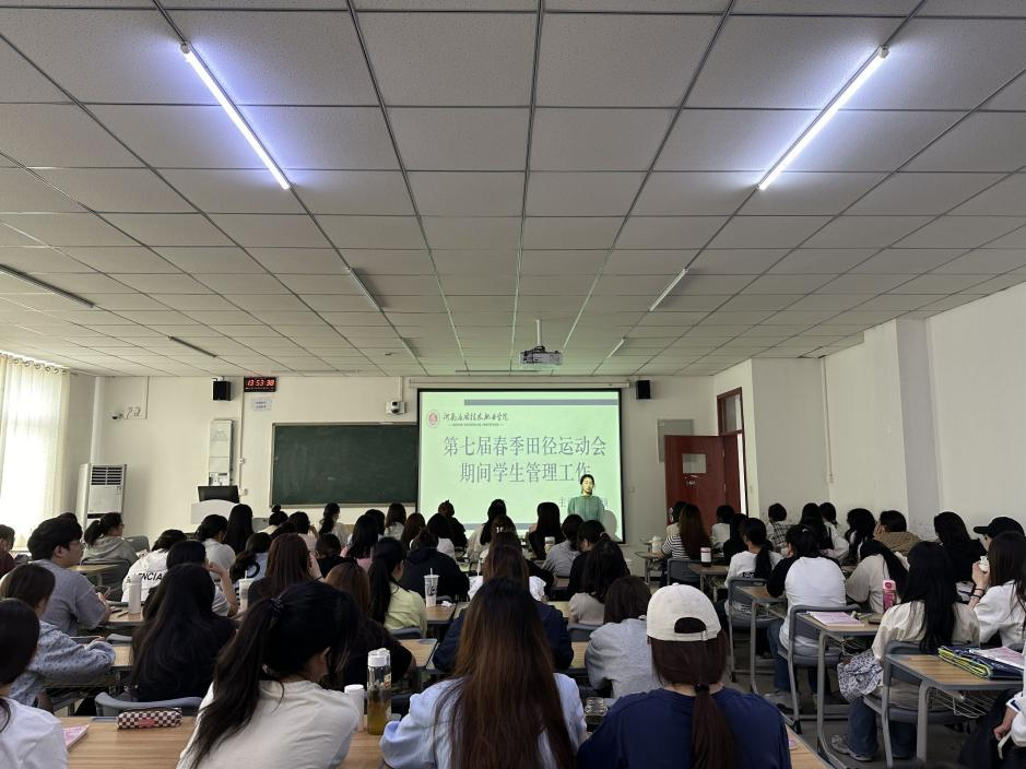 根据学校《关于举办Beat365中文官方网站第七届春季田径运动会的通知》文件要求,确保运动会期间学校正常教育教学及学生管理秩序,护理学院于4月17日组织各班召开主题班会,强调运动会期间的安全工作,增强安全意识和法治观念,提高大家防范安全事故的能力。