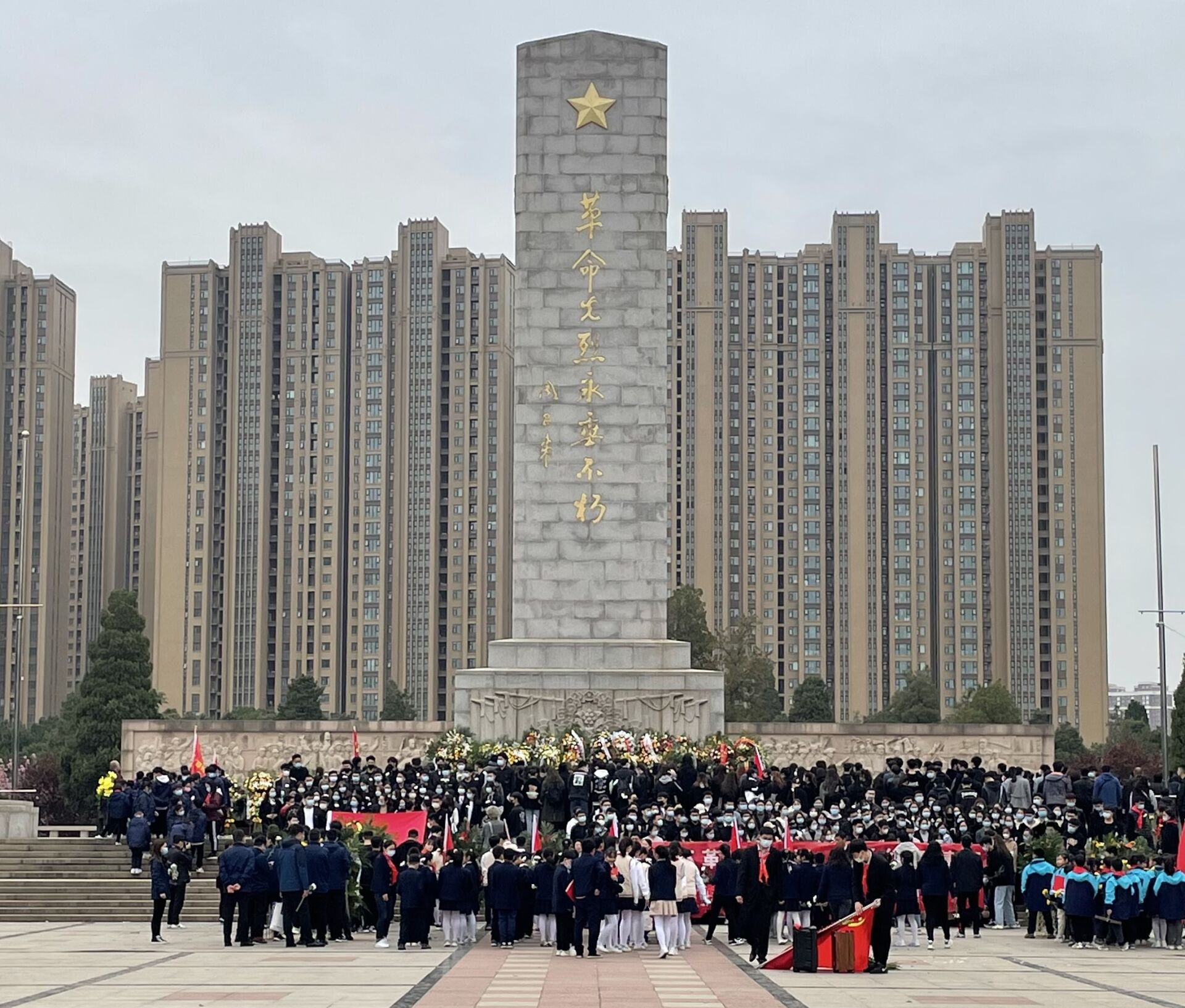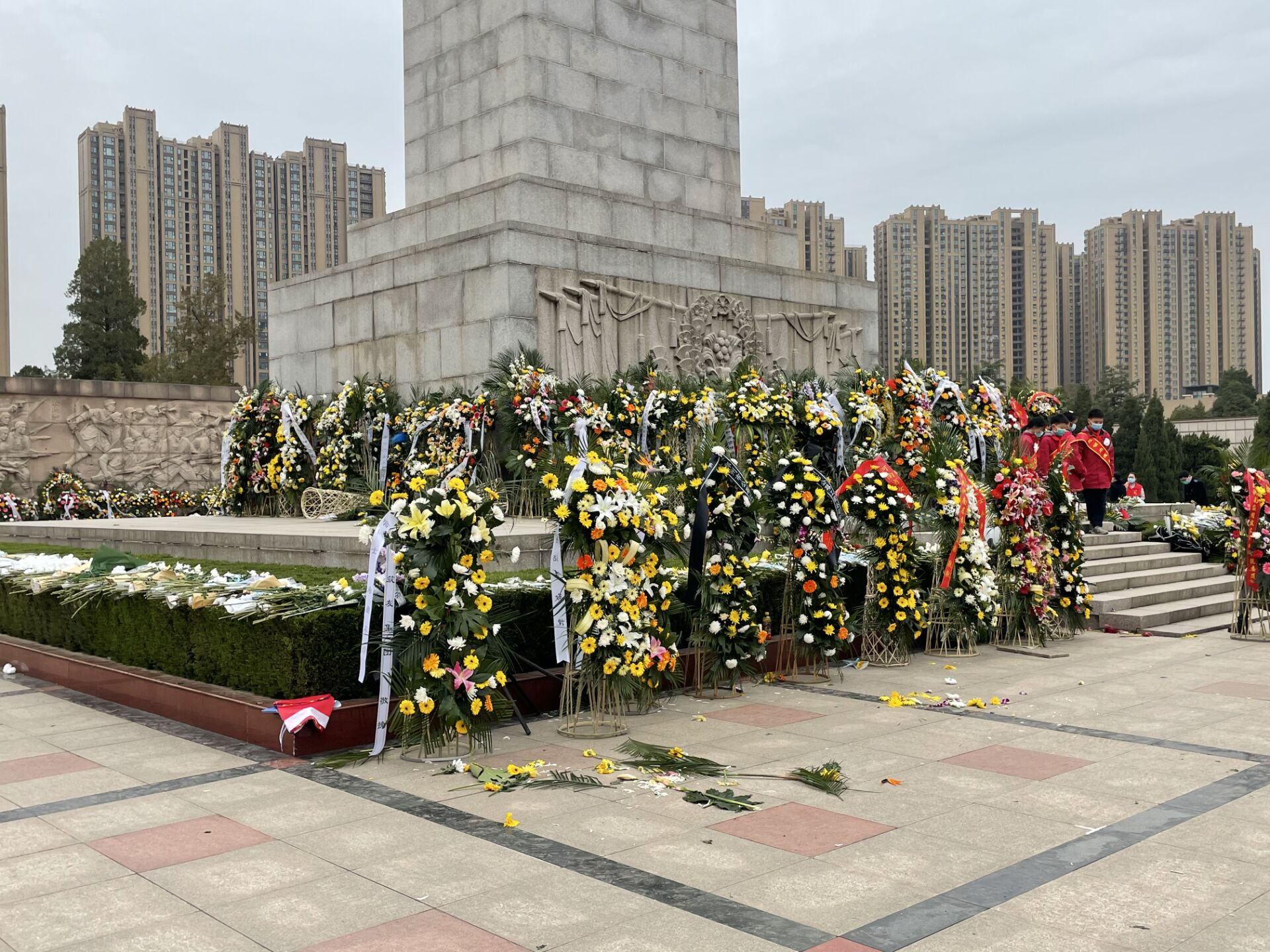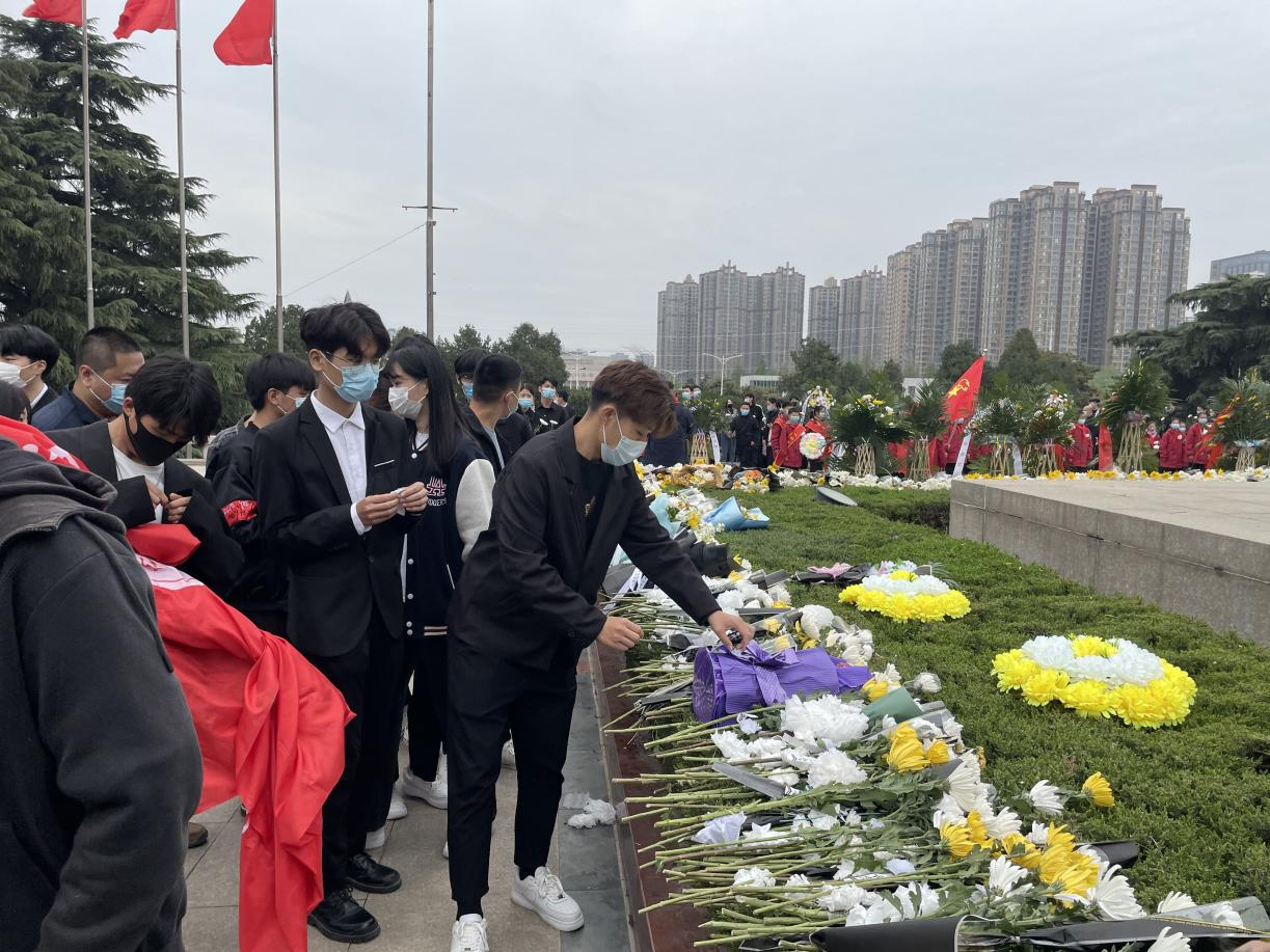 中午12:30同学们怀着对烈士的崇敬之情,齐聚郑州市烈士陵园,共同缅怀为战争而光荣牺牲的烈士,以告慰烈士先灵。烈士墓是革命英雄长眠的地方,参加活动的人员穿着严肃整齐,佩戴口罩。在负责人的带领下,学子们有序的参观了革命烈士纪念馆、陵墓等,大家在墓碑前鞠躬默哀、寄托思念,为烈士敬上装载崇敬之意的鲜花,并低吟致悼词来表达心中对先烈的沉重情感。