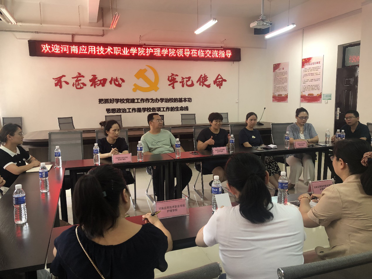 为借鉴学习兄弟院校的先进经验,进一步提升我院教学水平、完善实训室建设方案,8月4日,Beat365中文官方网站护理学院院长王风云,带领学院教研室主任、骨干专业教师一行十二人,前往济源职业技术学院进行参观学习。此次参观受到了济职医学护理系周卫东主任、卢鑫书记等领导的热情接待。