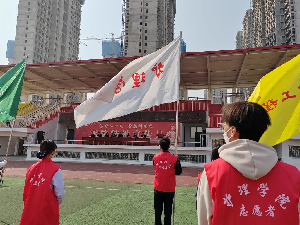 今年 3 月 5 日是第六十个学雷锋纪念日,是第 24 个中国青年志愿者服务日。为深入学习宣传贯彻党的二十大精神,传承和弘扬雷锋精神,丰富新时代青年志愿服务内涵,引领广大团员青年奋进新时代、奋进新征程,校团委于3月2日下午在校运动场举行“学习二十大 志愿新时代”雷锋精神宣传月系列活动启动仪式,我院积极组织部分师生代表参加此次活动。