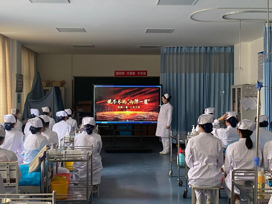 为深入开展党史学习教育,铭记百年奋斗历程,传承红色精神,2022年4月14日下午,护理学院刘丽老师在D202为护理2105班全体同学进行“两弹一星”星红色精神宣讲。