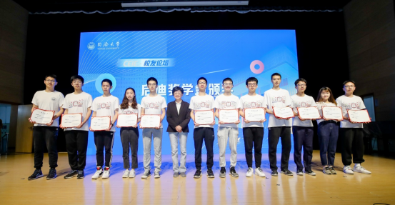 获奖学生代表2017级自动化专业本科生李成希发言,他首先表达了对吴启迪教授的敬仰与感谢,并谈到自己对启迪奖学金背后精神的理解,最后号召全体同济学子秉持创新精神,提高实践能力,同舟共济,自强不息,将论文写在祖国大地上。