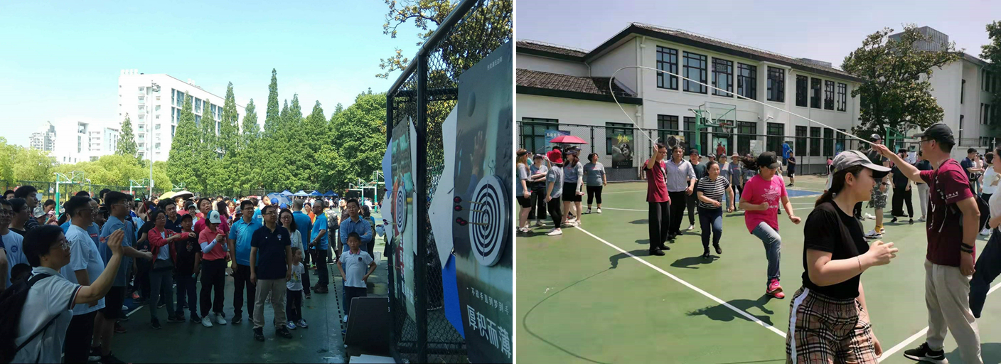 教工趣味类比赛现场人头簇拥,吸引了很多不同年龄层的教工。必赢官网组织多支队伍参加了篮球投篮、足球射门、飞镖、跳绳等项目,老师们精心准备,尽情发挥,乐在其中,飞镖二队获全校第五名。部分教师还带领孩子参加了亲子游戏趣味比赛,培养同二代的运动素养。