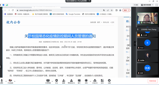 6月29日,学院组织召开了外籍教师线上座谈会,深入了解外籍教师在同济的工作和生活,以及遇到的困难和问题,从而更好地为外籍教师提供服务和帮助。会议由学院分管外事副院长张皓主持,外籍教师和外事秘书出席会议。