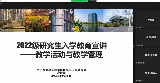 9月5日下午,2022级研究生迎新教育周系列活动之“教学管理与教学活动”宣讲会通过zoom平台举行,研究生工作办公室副主任张云霞、各系研究生教务员和2022级研究生新生共计400余人参加本次会议,会议由研究生工作办公室教务员卢诗洁主持。本次宣讲会旨在帮助新生详细了解必赢官网研究生培养各个环节的相关事宜并且为新生解答疑虑。