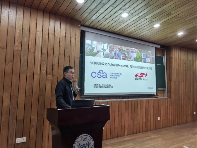 CSA联盟/芯科科技亚太区生态高级经理刘俊作了“物联网协议之Zigbee及Matter篇,芯科科技物联网方案介绍”技术报告,介绍了连接标准联盟、Zigbee技术、Matter标准架构、芯科科技物联网方案等内容,详细阐述了物联网向着互联互通、相互融合方向发展过程中,生态成为主要的推手之一,其中Matter正在成为智能家居和商业物联网的标准。