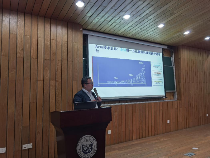 随后,安谋科技、华为、CSA联盟、地平线专家分别作了四场精彩的技术讲座。安谋科技市场经理宋斌、安谋赛项合作伙伴灵动微电子软件与系统工程经理苏勇共同作了“安谋科技赛题分享及开发平台介绍”的报告。宋斌经理分享了ARM技术生态、教育推广计划以及嵌入式虚实结合实践平台等内容;苏勇经理对灵动微电子、竞赛平台MM32F5270及特色、安谋科技&灵动赛题、竞赛技术支持分别进行了介绍和说明。