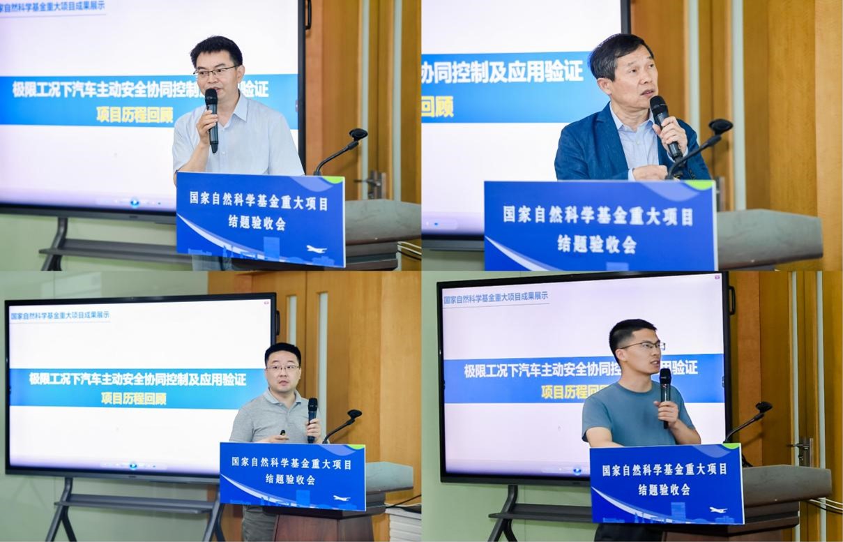 项目负责人陈虹教授作总体汇报,介绍了项目在极限工况下车辆侧-纵-垂动力学建模及失稳机理、实时鲁棒状态感知、主动安全协同控制、人机协同,以及应用验证等方面取得的突破性创新研究成果。