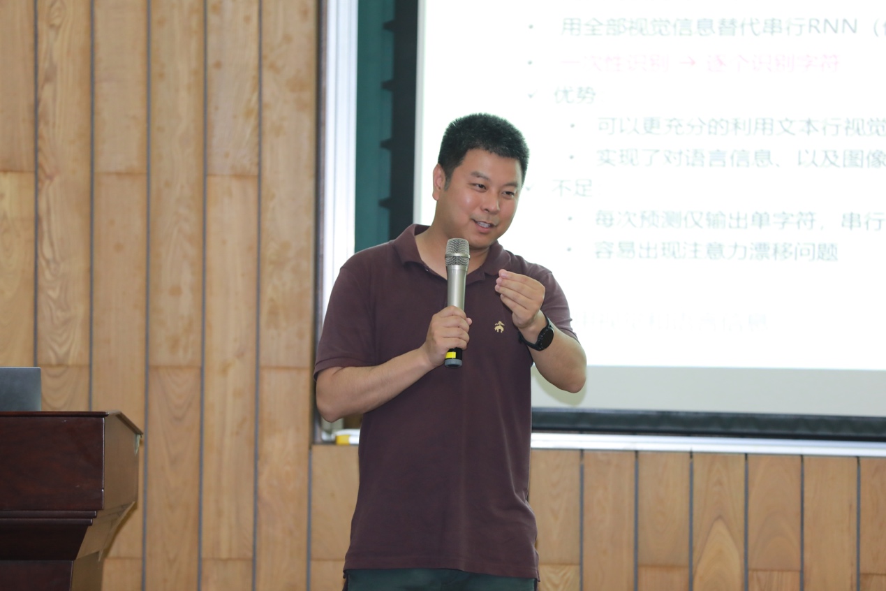 复旦大学青年研究员陈智能,是CCF-百度松果基金学者,同时也担任百度飞桨讲师,作了题为“场景文本:从视觉识别到视觉-语言交互”的学术报告,聚焦大模型时代,详细介绍了场景文本识别方法从单纯利用字符级视觉特征,到利用文本行视觉特征,再到视觉和语言联合建模的发展演进过程,同时介绍了AI大模型时代,研究领域取得的代表性成果和发展趋势。通过深入互动,引导同学们进一步了解了场景文本识别领域的技术概貌。