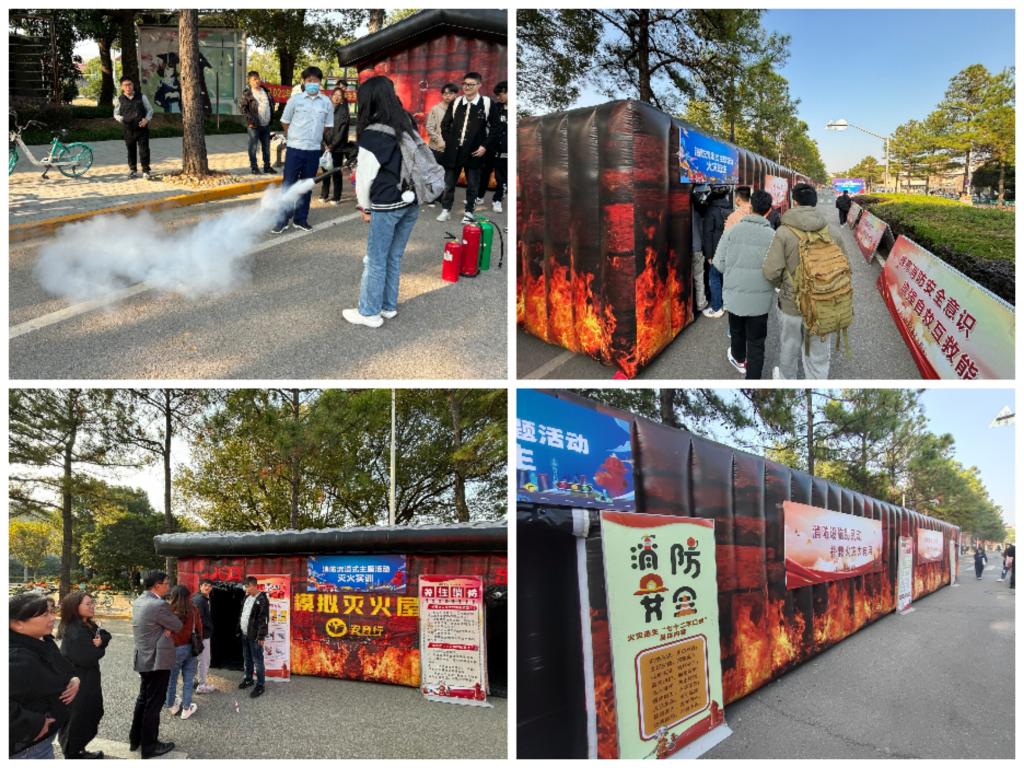 最后,嘉定校区保卫办的彭亮老师向师生讲述了近年来上海市发生的几起典型火灾案例,讲解了不同类型灭火器的使用方法及注意事项,并指导师生在户外模拟灭火屋切身体验模拟火场逃生,学习灭火知识,促进自身增强安全意识和逃生自救能力。