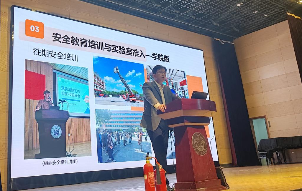 首先,学院分管安全工作副院长丁志军分别从安全管理制度建设与责任体系、安全检查与隐患整改、安全教育培训与实验室准入、安全风险评估与应急管理这四方面详细介绍了学院当前的安全制度建设与责任体系,让师生了解学院、教师、学生在安全管理方面分别应该做什么、怎么做。