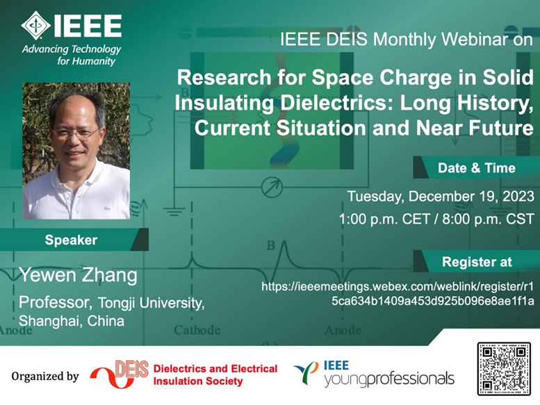 12月19日,应IEEE电介质与电气绝缘协会(DEIS)邀请,必赢官网电气工程系张冶文教授作了主题为《Research for Space Charge in Solid Insulating Dielectrics: Long History, Current Situation and Near Future(固体电介质空间电荷研究:历史、现状及未来)》的全球直播网络报告。该网络报告会由IEEE电介质与电气绝缘协会和IEEE青年专家组联合主办,邀请全球电介质与电气绝缘领域顶级专家介绍前沿进展,分享科研经验。本次报告吸引了来自全球工业界和学术界的专家和教授报名和在线观看。
