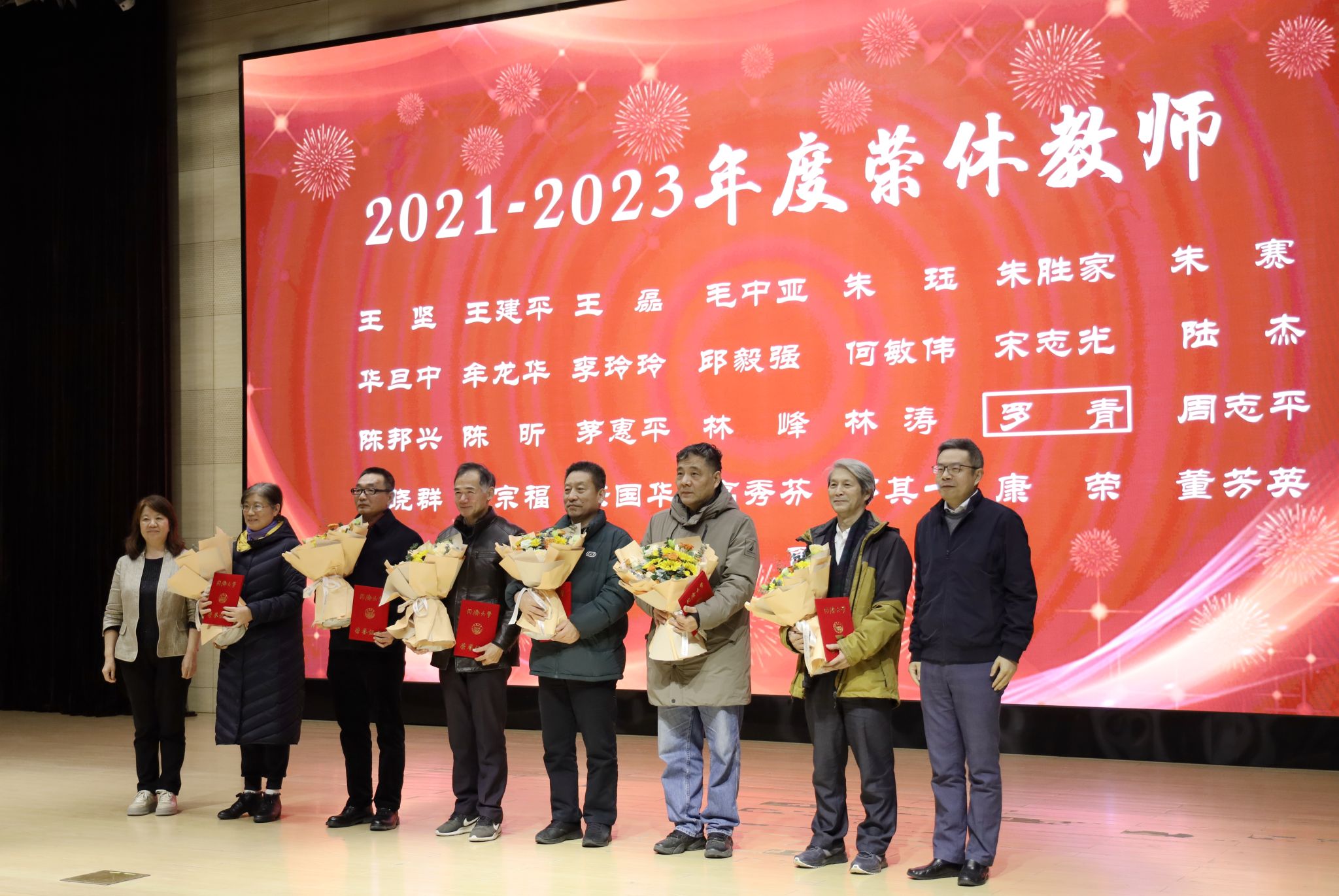 学院的发展与成绩离不开一代代电信人的无私奉献和奋斗,会上特别举行荣休仪式,向退休教师致敬及感谢。宋志光、陆杰、陈邦兴、赵晓群、胡宗福、董芳英老师作为代表上台领奖,院长、书记为老师们送上荣休证书和鲜花,感谢大家为学院做出的贡献。“莫道桑榆晚,为霞尚满天”,希望老师们继续为学院的发展建言献策,常回“嘉”看看。