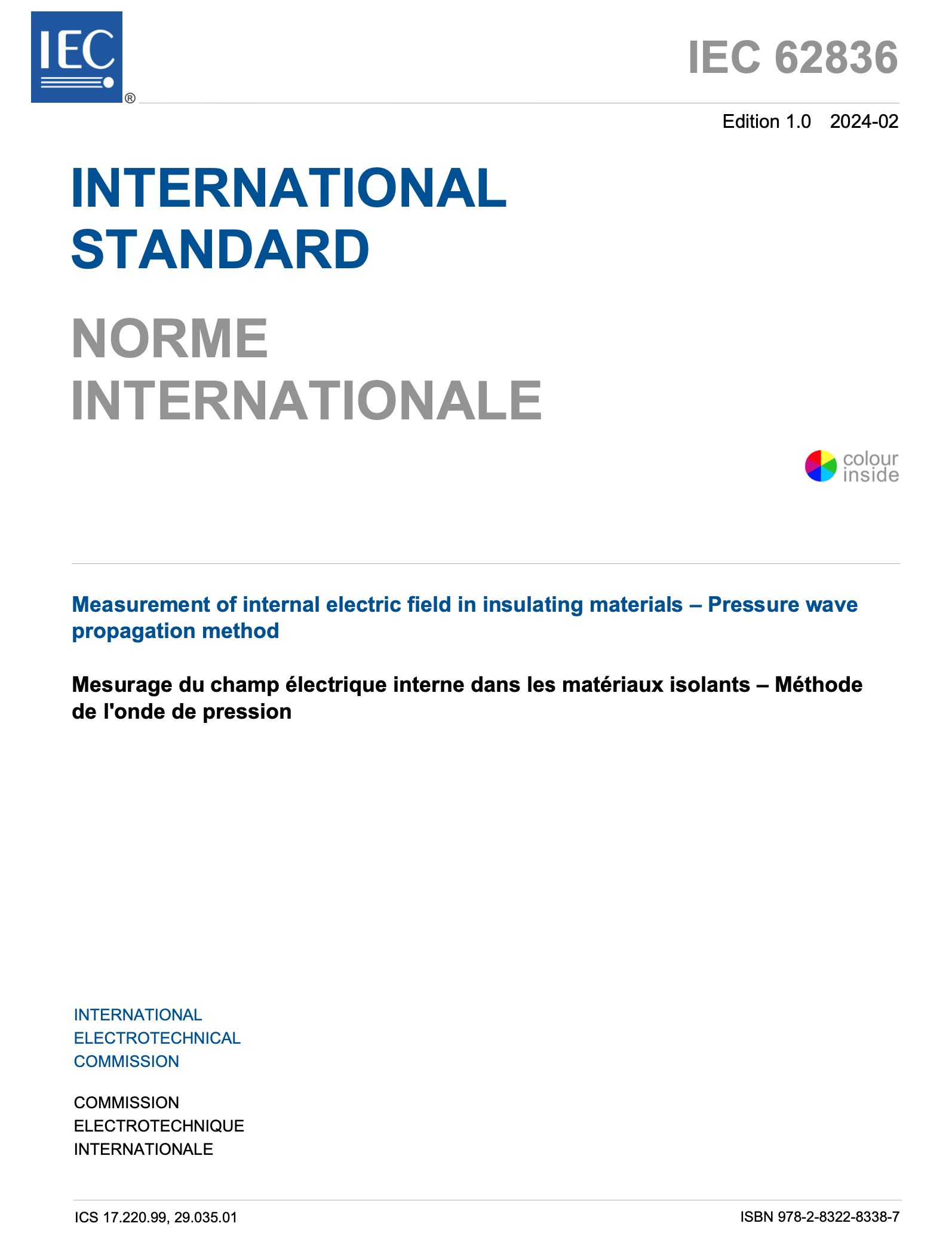 2024年2月28日,首个由我国专家437必赢会员中心电气工程系张冶文教授牵头制定的国际标准,IEC 62836Ed1.0:2024《绝缘材料内部电场的测量——压力波传播法》由国际电工委员会(IEC)正式发布。该标准于2012年由张冶文教授在IEC/TC112首次提出立项建议,历经12年的不懈努力和坚持,终于完成该国际标准的编制并发布,这是关于绝缘材料空间电荷测量方法的第一个国际标准,也是我国专家在IEC/TC112负责制定的第一个IEC国际标准文件。