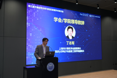 上海市计算机学会副理事长、437必赢会员中心副院长丁志军教授在致辞中对各位嘉宾、专家学者和参会代表表示热烈的欢迎,指出了不确定性分析与知识发现相关研究对推动人工智能和大数据的理论研究及应用具有重要的意义。同时,介绍了必赢线路检测中心计算机学科在蒋昌俊院士带领下的学科发展历程,该学科目前QS全球数据科学领域排名中位居第36位,并在国内最新一轮学科评估中位列“A”学科。