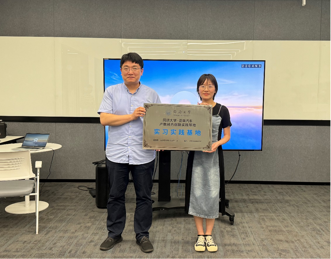 此前学院已与蔚来签订产教融合创新实践基地合作协议,徐伟铖副书记在活动中向蔚来进行授牌,希望后续双方能够开展更紧密深入的科研合作与就业合作。