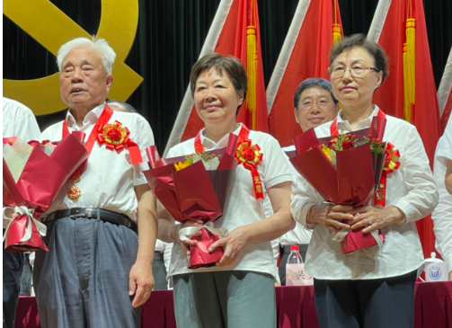 张明达(图右一),电子科学与技术系退休教师,1973年9月入党。