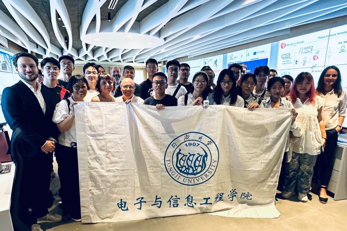 开营仪式后,师生代表团首先在佛罗伦萨大学进行了为期4天的学习交流活动。佛罗伦萨具有丰厚的艺术类、建筑类、设计创新类等教育教学资源。佛罗伦萨大学信息工程系(Department of Information Engineering, DIE)Prof. Francesco Chiti基于佛罗伦萨大学的研究现状,给师生代表团进行了以“Intelligent and connected vehicles”为主题的讲座。讲座内容涵盖智能网联汽车的前沿技术、实际应用以及欧盟相关的智能网联汽车法律。在佛罗伦萨大学的协调安排下,师生代表团还参观了佛罗伦萨智慧城市控制中心,受到了佛罗伦萨市政部门领导Caterina Graziani的热烈欢迎。随后,智慧城市项目主管Sara Naldoni介绍了“数字佛罗伦萨”项目的整体情况,强调了数字合作在实现城市数字化转型中的重要性。随后,项目核心研发人员Marco Mencacci和Emanuele Geri通过介绍佛罗伦萨市政府在数据驱动治理方面的实际应用案例,展示了大数据和智能分析技术在提高城市管理效率和精确度方面的重要作用。本次参观交流活动还受到了佛罗伦萨官方媒体Firenzedigitale的新闻报道(详细内容请见https://www.firenzedigitale.it/node/609)。