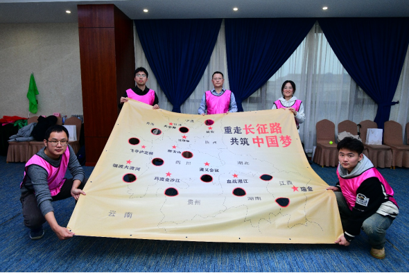 在素质拓展环节,与会人员通过参与“重走长征路”“党史知识大比拼”“凝心铸塔”等活动,在红色活动中重温党的光辉历史,在团队合作中增强凝聚力。通过亲身体验和团队合作,进一步增强了对党的认同感和归属感,提升了团队向心力和战斗力。