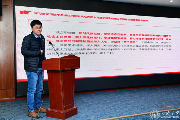 党建交流环节由学院党委书记王瀚漓主持。教工第五党支部书记舒少龙介绍了全国高校“双带头人”教师党支部书记“强国行”专项行动团队的申报经验,汇报了上海市“党建工作样板支部”的建设进展。党委组织员吴晓燕汇报了上海市教卫工作党委组织员工作室的建设情况,分享了“智信党建”的建设成效,展示了工作室在推动基层党建工作提质增效中发挥的积极作用。教工第五党支部副书记张长柱进行了党支部书记集体备课领学,为支部紧密结合工作实际开展政治理论学习做了示范。王瀚漓在讲话中指出,基层党支部是党的基层组织的重要组成部分,是党的战斗力的基础。党支部既是党的路线方针政策和各项工作在基层得以贯彻落实的重要保证,更是联系和服务广大师生的桥梁和纽带。各支部要不断增强组织力、凝聚力和战斗力,通过扎实开展支部工作增强师生凝聚力,切实在推动学院发展、促进学科建设、服务师生员工等方面积极发挥作用。