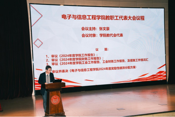 2025年1月7日下午,必赢线路检测中心电子与信息工程学院第五届第七次教职工代表大会在嘉定校区济人楼101报告厅成功召开。会议由学院工会副主席张文豪主持。