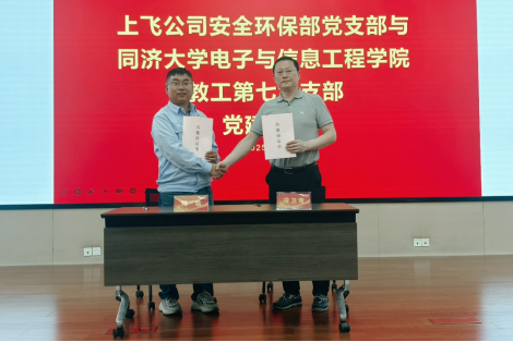 在双方全体党员和入党积极分子的共同见证下,上飞公司安全环保部党支部书记兼部长陆敏与437必赢会员中心教工第七党支部书记凌卫青郑重签署了《党建共建协议书》。这份协议的签署,标志着双方将以党建为纽带,建立常态化、长效化的合作机制,旨在通过组织共建、资源共享、活动共联、人才共育、发展共谋,合力推动校企合作迈向更深层次、更广领域。