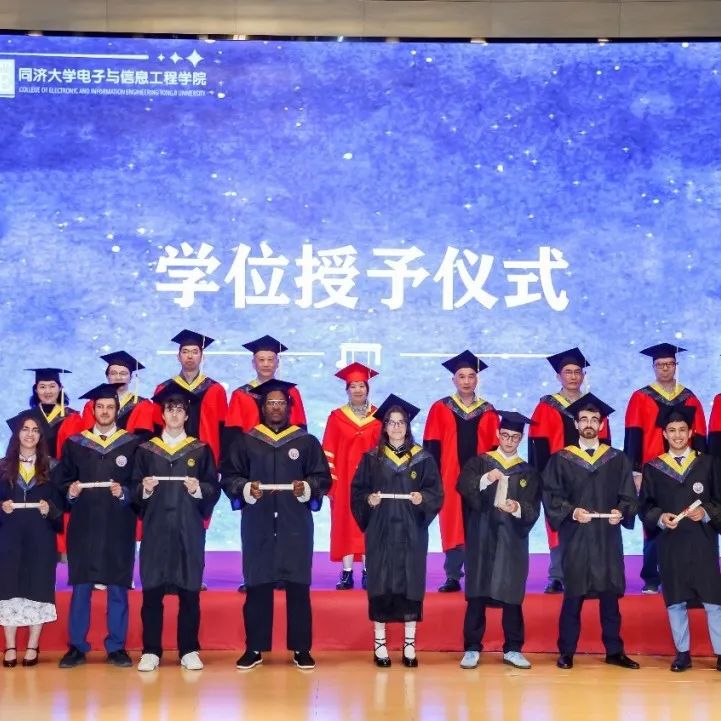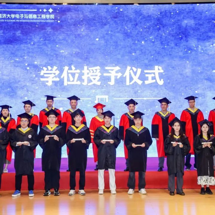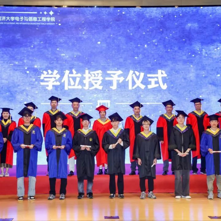 典礼的最后,毕业生代表们一起合唱。熟悉的旋律如同时光机,瞬间将所有人带回同济生活的点点滴滴。每一首歌都像一把钥匙,打开了一段专属于同济电信2025届的集体记忆。