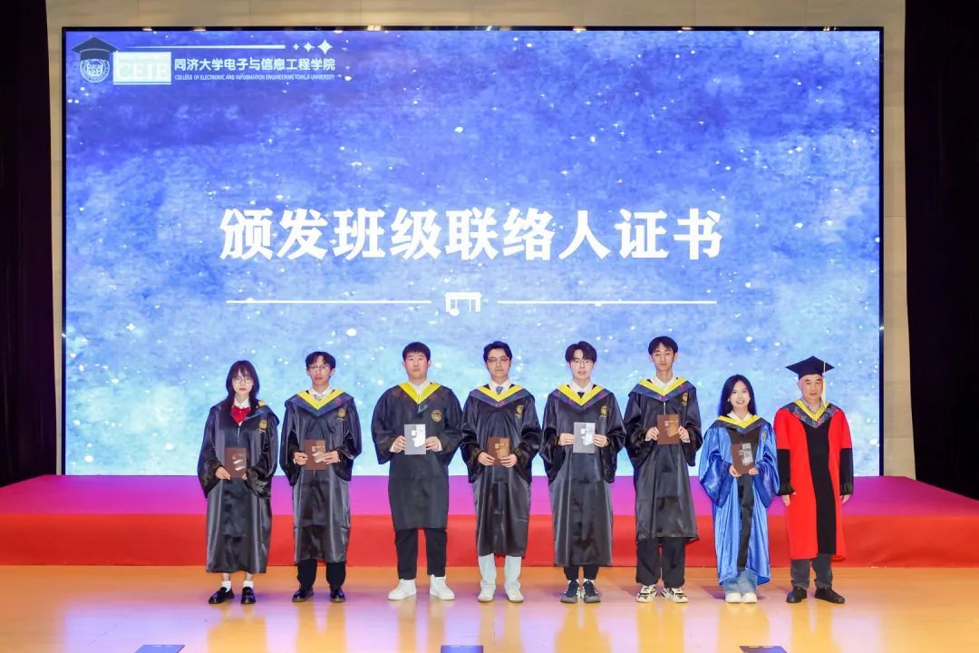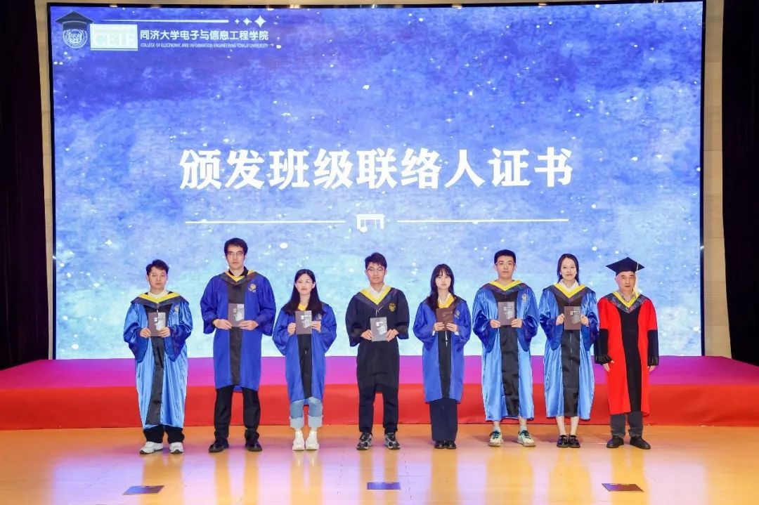 学院的发展和同学们的成长离不开校友的反哺与鼎力支持。无论走到世界哪个角落,曾经的同窗都是值得信任的战友和伙伴。典礼上,陈启军教授为班级联络人颁发证书。