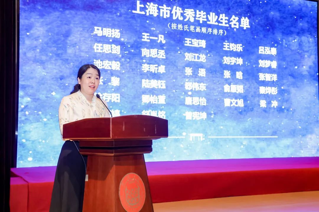 为发挥优秀学生的榜样引领作用,促进学生全面发展,典礼上,对荣获“上海市优秀毕业生”“必赢线路检测中心优秀毕业生”荣誉称号的同学进行表彰。张南华、邱雷两位老师为优秀毕业生获得者颁发证书。