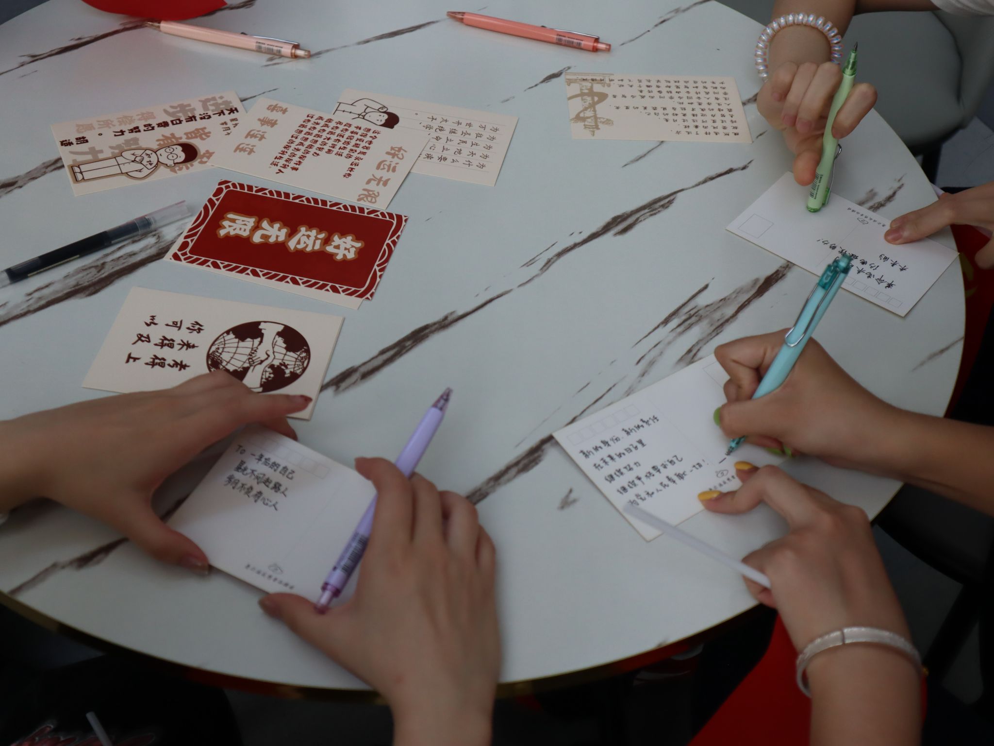 “用胶片封存誓言,让初心穿越时光”。学生党委为每一位党员现场拍摄“初心纪念照”,并赠送专属相框,定格“青春向党”的誓言,献礼党的生日,让今天的承诺成为永久的信仰。王瀚漓书记为党员们亲笔书写“入党明信片”,寄语青年党员“初心如磐,使命在肩,生逢盛世当不负盛世,生逢其时当奋斗其时”。