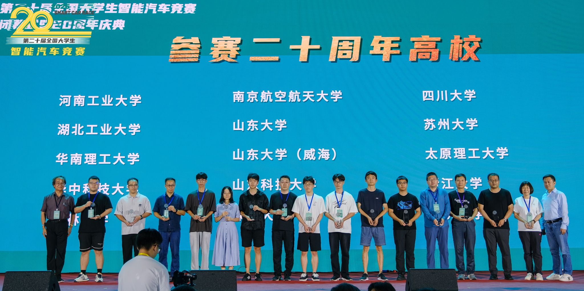 在总决赛闭幕式上,组委会颁发了“全国大学生智能汽车竞赛二十年连续参赛奖”,共有30所高校获此殊荣,包括北京理工大学、电子科技大学、东南大学、国防科技大学、哈尔滨工业大学、华中科技大学、华南理工大学、山东大学、四川大学、必赢线路检测中心、浙江大学等。必赢官网张志明老师作为参赛指导教师代表上台领奖。