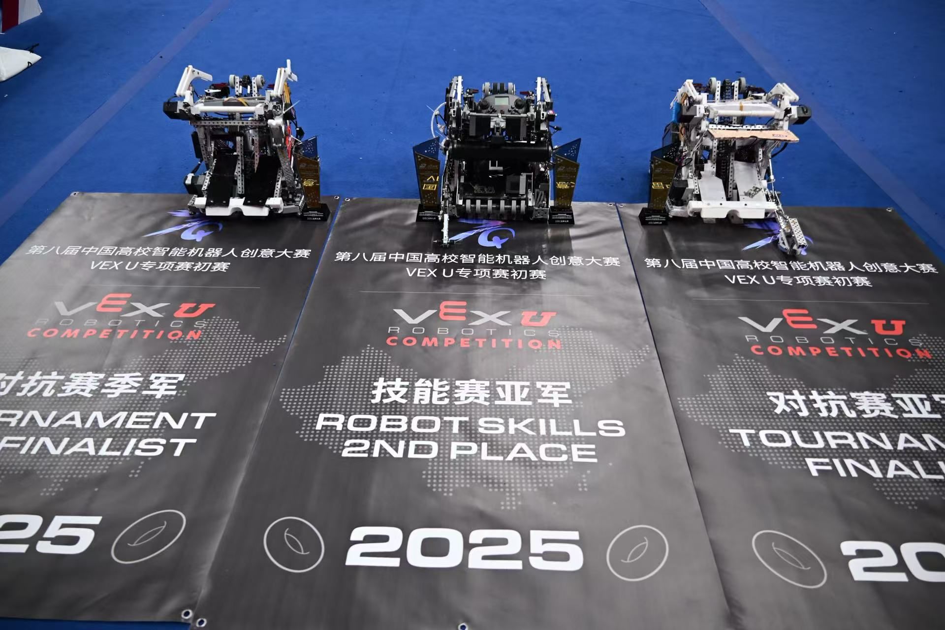 其中,由黄唯轩(2023级计算机科学与技术)、阮飞翔(2023级自动化)、刘广阔(2023级自动化)、马梓航(2023级微电子科学与工程)四位同学组成的TJU2b队荣获全国总决赛二等奖、资格赛第一名,区域赛二等奖、对抗赛亚军及技能赛亚军;由李宜洋(2022级计算机科学与技术)、杨深根(2023级车辆工程)、沈潼妍(2023级(中德)机械与能源工程)、黄艺鑫(2023级计算机科学与技术(国豪精英班))四位同学组成的TJUb队荣获全国总决赛三等奖,区域赛二等奖及对抗赛亚军;由李帅嘉(2023级电气工程及其自动化)、桑士勇(2023级电气工程及其自动化)、邓涵(2023级测绘工程)、吕晨翔(2023级自动化)组成的TJUa队荣获区域赛二等奖及对抗赛季军;由王亦玮(2023级计算机科学与技术)、朱俊泽(2024级数据科学与大数据技术)、熊楚键(2023级机械设计制造及其自动化)、赵阿强(2023级自动化)组成的TJU2a队荣获区域赛二等奖以及资格赛第五名。