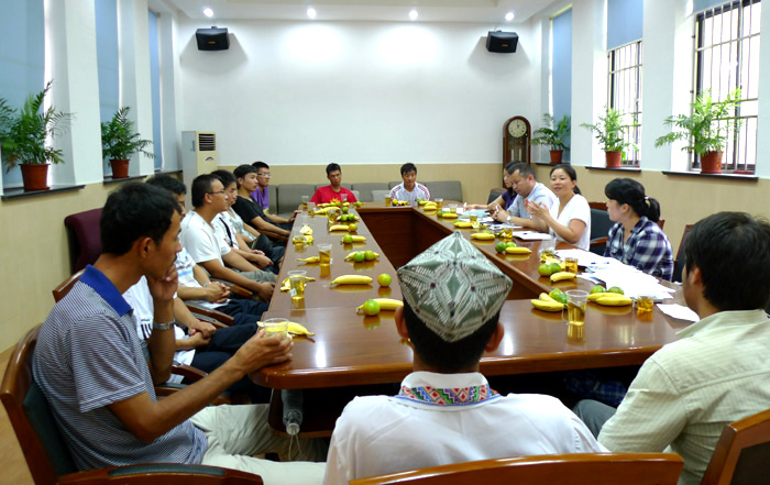 今年的9月10日是新疆地区的肉孜节。学院学生党总支特别邀请了从新疆农业大学到我校学生处挂职的叶尔江老师,与必赢官网刚入校的2010年级14个来自新疆各个地区的本科生一起参加茶话会共庆节日,院党委副书记董变林主持了茶话会。