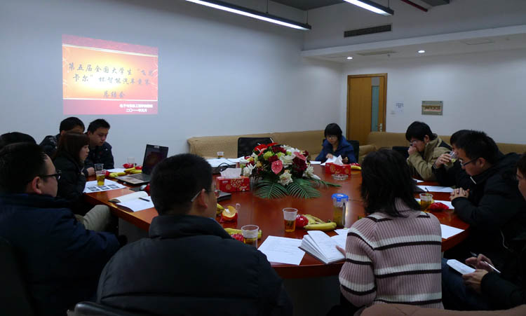 会上,比赛指导教师朱 劲、罗 峰、周爱国老师对第五届参赛的情况进行了总结,参赛学生代表干瑞汇报了参加比赛的心得体会。金炜老师对指导教师的辛勤劳动和参赛队员的拼搏精神给予了充分肯定,并和与会者讨论了参加下一届比赛的备战方案和备战思路。