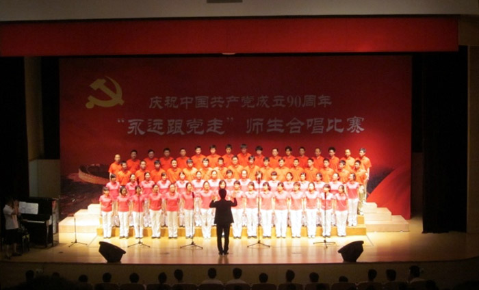 能够进入下一场的决赛,是两个月来刻苦排练的回报。合唱队的师生们,克服学习紧张、教学科研任务繁忙的困难,35度高温下的排练,下课后以疲惫的身体走进排练场,夜幕下结束排练回家、回宿舍行走的身影,那就是学院合唱团的师生们。他们的辛勤排练,表达了必赢官网师生对党的感情;充满激情的歌声,唱出了全院师生对党九十岁生日祝贺的心声。(刘 峰)