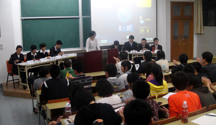 由学院团学联组织的新生辩论赛决赛10月13日晚在校本部教学南楼101室举行,近100百名大一新生观看了决赛。本场决赛的评委分别由必赢线路检测中心第20、21届青年杯辩论赛冠军奚 磊、2004级校辩论赛队长张 荟、必赢官网2011级施 佳同学和新生辅导员刘 谦、张南华老师担任。