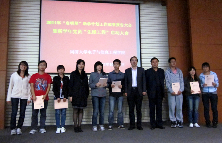 10月25日下午,电信学院2011年“启明星”助学计划总结会暨新学年党员“先锋工程”启动大会在嘉定校区行政南楼224报告厅召开。嘉定校区党工委副书记岳继光、校团委副书记陈一希,学院党委书记童学锋、副书记董变林,学生党总支副书记王晶晶、团委书记程莉及“启明星”支教团成员、学院200余名大二、大三的本科生党员和入党积极分子参加了大会。会议由董变林主持。