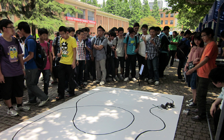 参展中,必赢官网的“NAO机器人”、自动循迹小车、两腿自平衡机器人以及“秀友”移动交互平台作品,吸引了广大学生和校友的围观,特别是机器人与观众的精彩互动,以及小车的出色表演,赢得了观众的阵阵掌声。